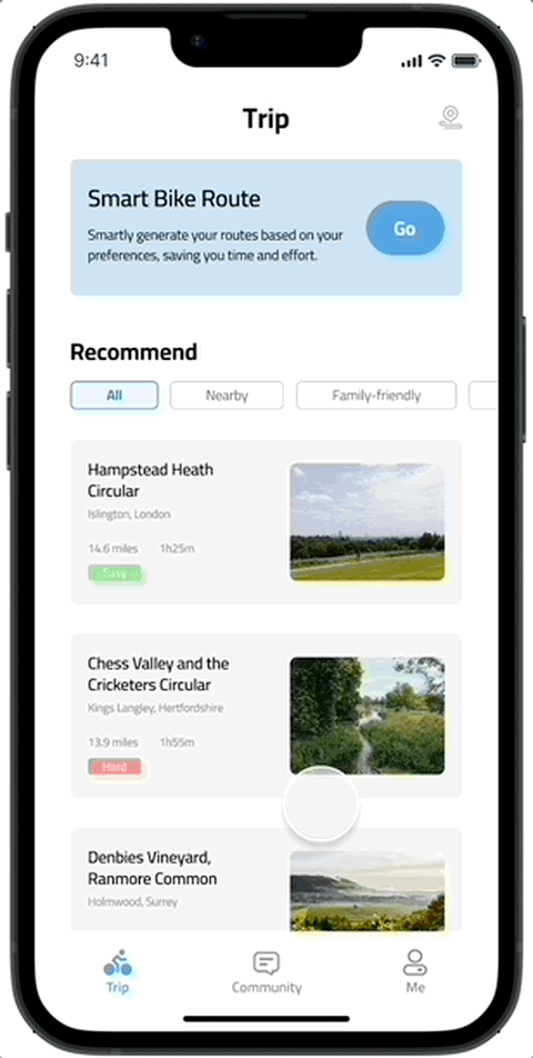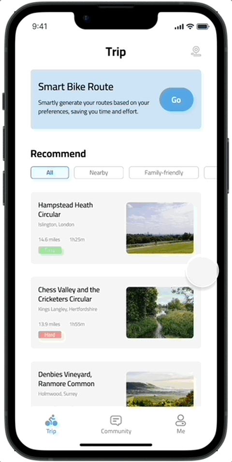 With a single tap, create a personalised cycling plan and adjust waypoints to match specific interests.