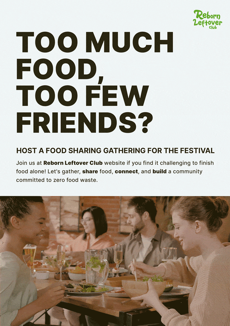 The design concept develops a campaign, branding the activity to convey its goal of reducing food waste through social interaction and collaboration among university students living alone.